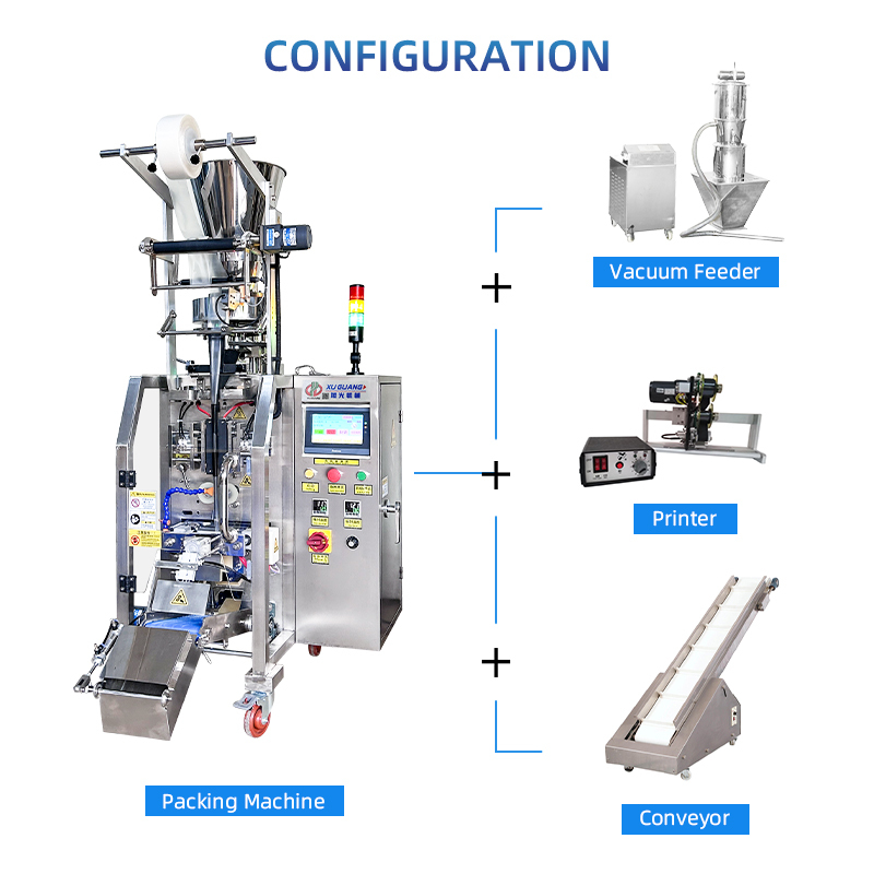 4. 设备能够自动完成计量、制袋、封口、打印批号、生产日期、有效期、计数等一系列工作。可以设置设备在完成某个设定的包装数量后,自动停止生产,实现真正的智能化、自动化生产。每分钟可以生产40-60包,8小时可生产19000-3000包,生产效率显著提升。