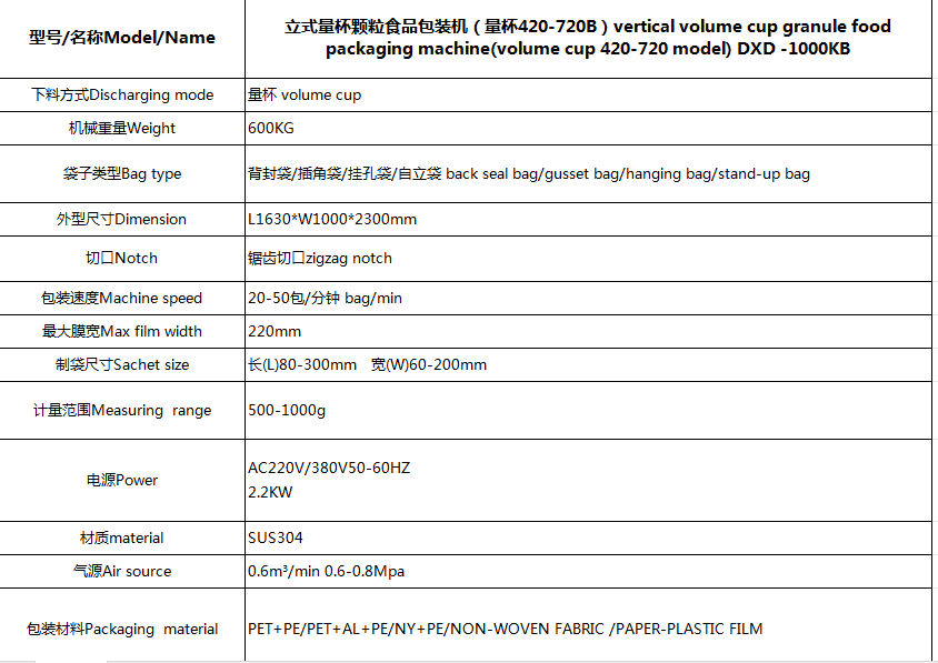 vertical volume cup granule food packaging machine(volume cup 420-720 model)