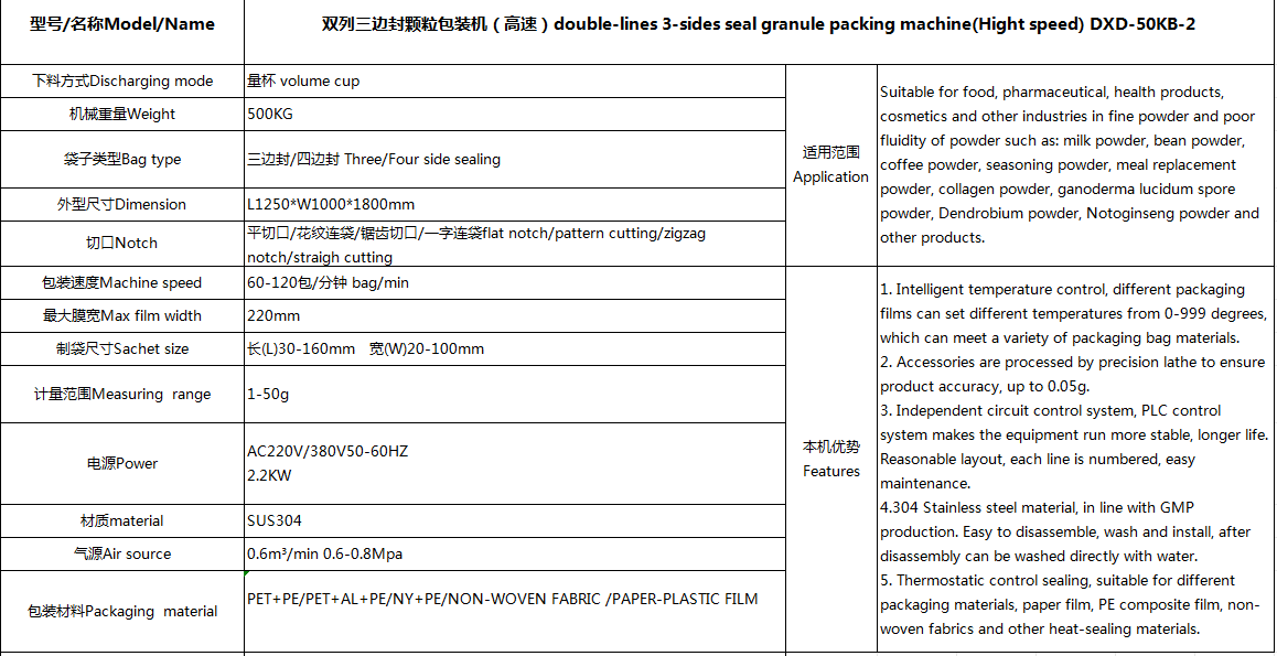 double-lines 3-sides seal granule packing machine(servo motor style)